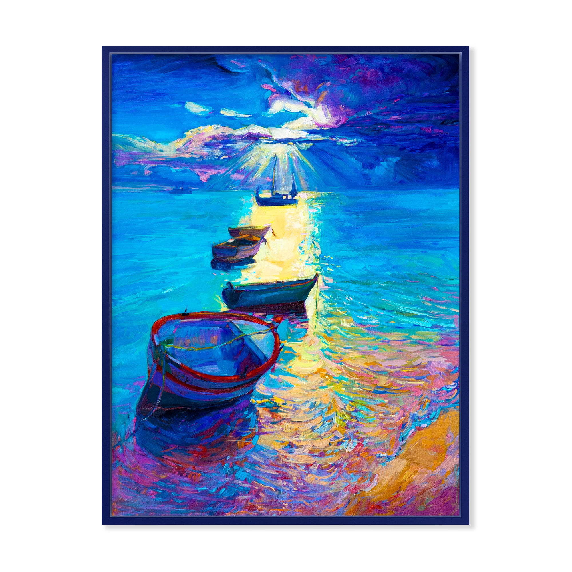 Fishing Boats On The Water With Dark Blue Sky Illustration 12 In X 20 In Framed Painting Canvas Art Print By Designart Walmart Com